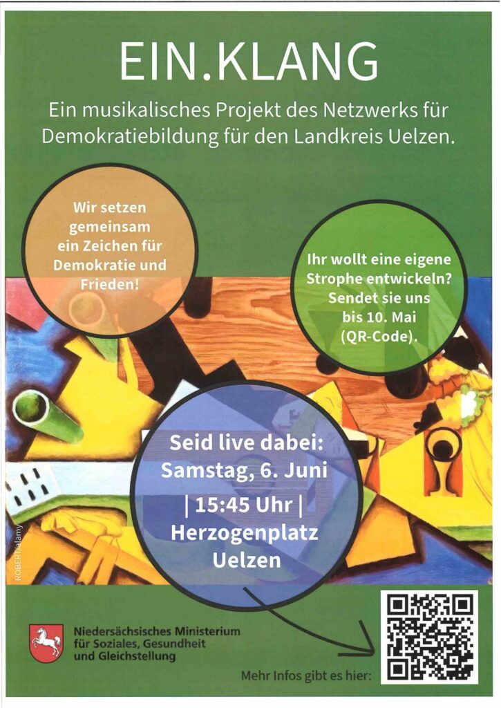 EIN.KLANG des Netzwerks für Demokratiebildung ist ein Musikprojekt für die Stadt und den Landkreis Uelzen. Damit wollen wir ein Zeichen für Demokratie und Frieden setzen.
